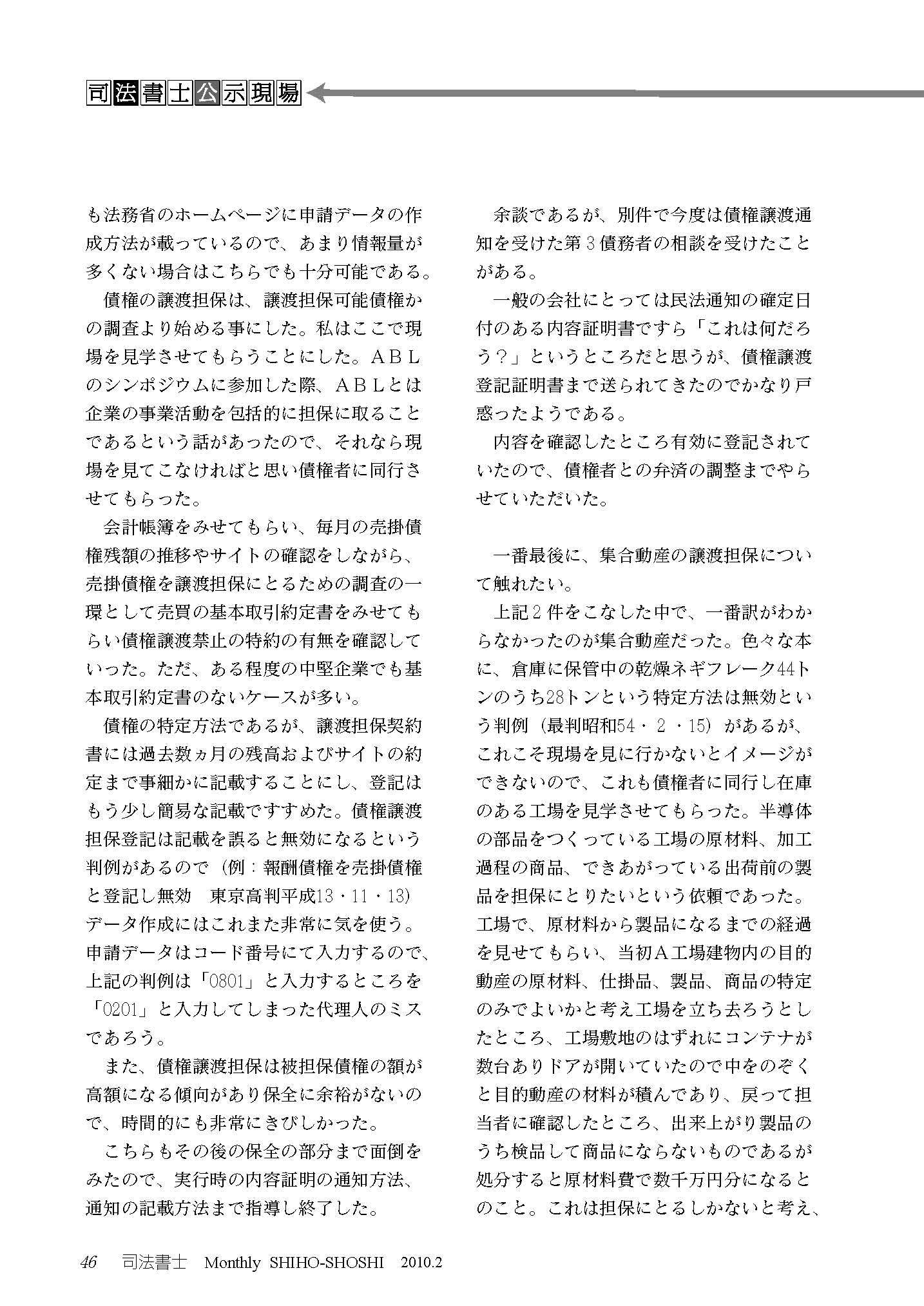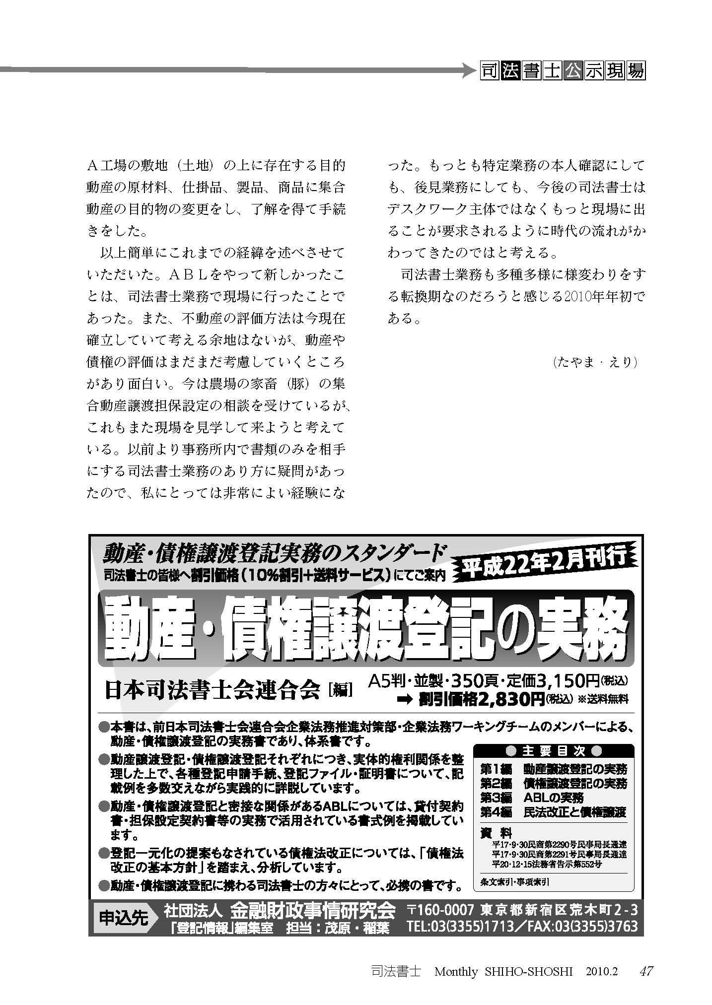 (日本司法書士会連合会【月報司法書士 NO.456】2010年2月号)