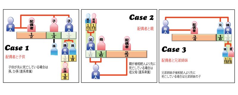 Case1 配偶者と子供、子供が先に死亡している場合は孫、ひ孫(直系卑属)