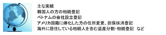 近年、グローバル化が進み海外も身近な存在となりました。それに伴い、外国人の方が日本の不動産を購入したり、日本人が外国籍を取得したりすることも珍しくありません。そんなグローバル化社会に対応し、当事務所では、外国籍の方、外国籍を取得された日本人の方、外国に居住している日本人の方などを含む登記手続きにも積極的に取り組んでおります。