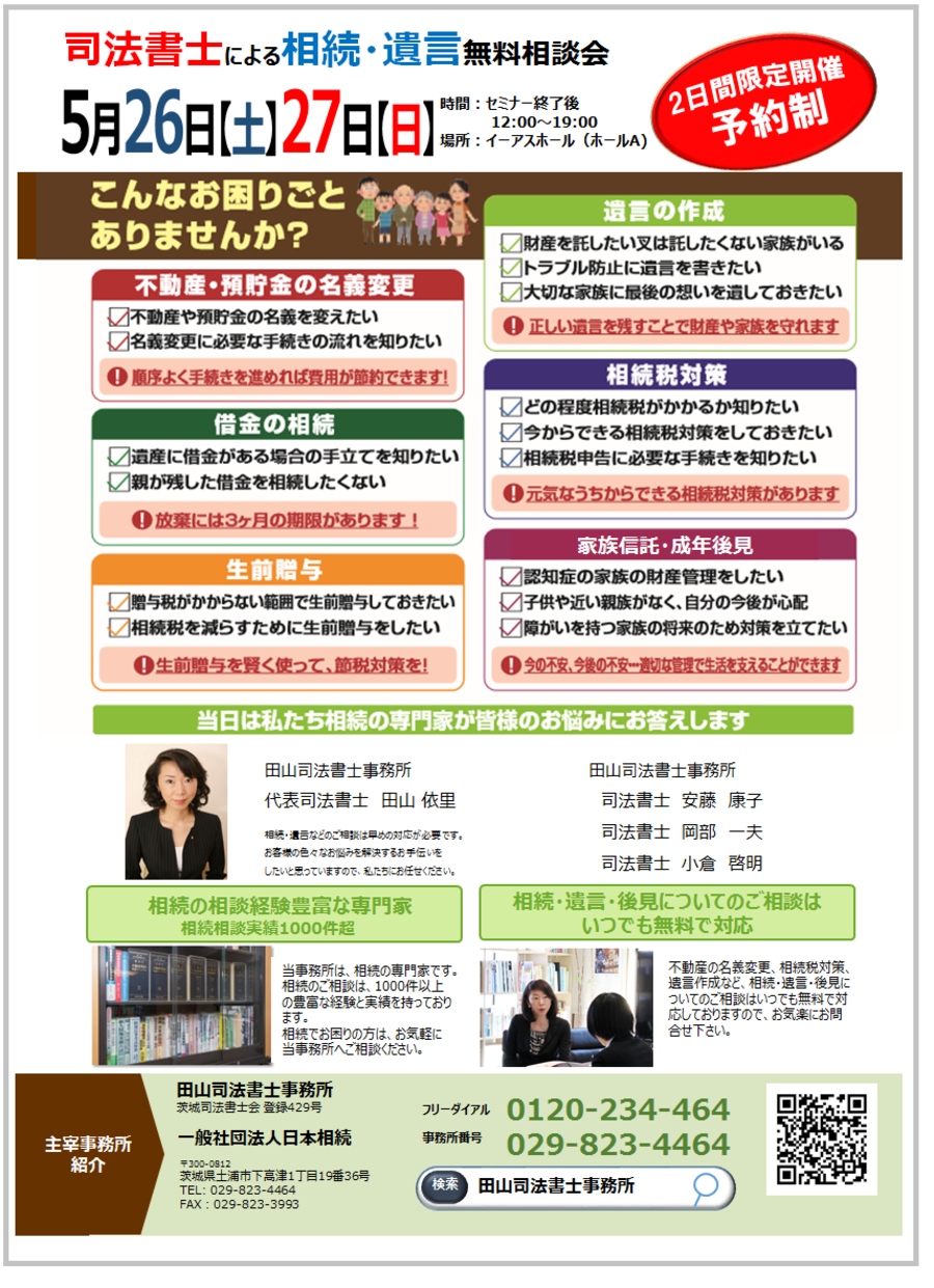 田山司法書士事務諸所では随時ご相談を受け付けております。